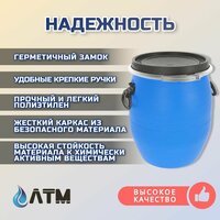Бочка (евробарабан) производится методом выдувного формования из полиэтилена низкого давления, отличающегося высокими прочностными характеристиками и химической стойкостью. Бесшовный корпус бочки не имеет слабых мест, благодаря чему может противостоять сильным механическим воздействиям.