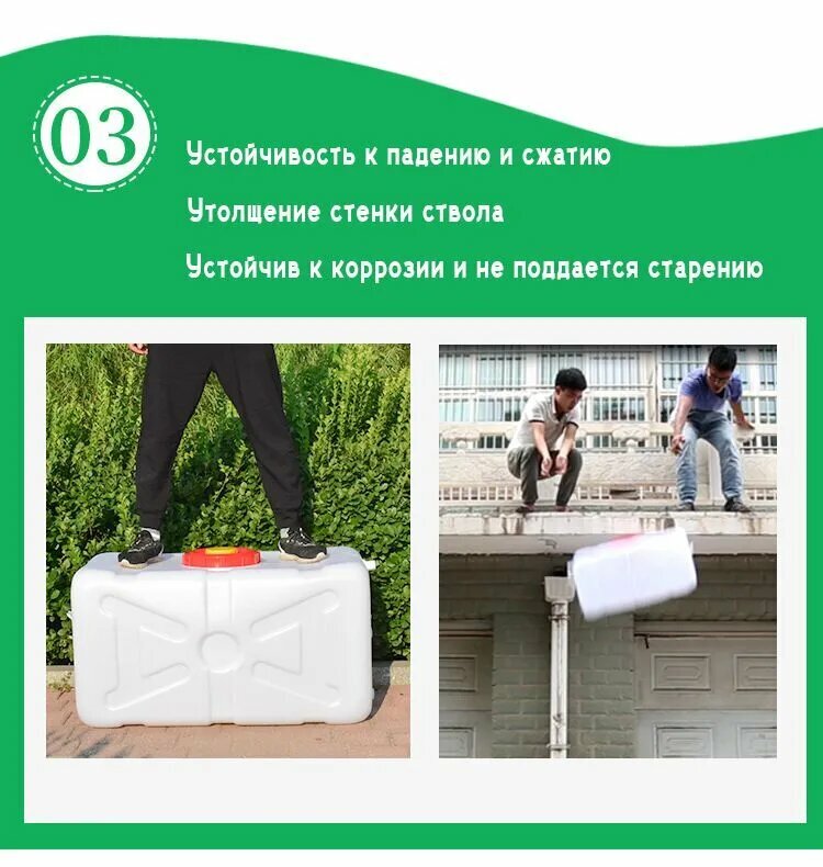 пластиковый водяной резервуарПластиковый водяной резервуар — это идеальное решение для хранения воды в домашних условиях. С ёмкостью 220 литров, этот большой горизонтальный бак обеспечивает надежное и безопасное хранение. Изготовленный из качественного пластика, он обладает прочными стенками, что делает его устойчивым к ударам и давлениям. Этот пластиковый бак антивозрастной и не содержит вредных веществ, что подтверждает его безопасность для пищевых продуктов. Внутри нет посторонних запахов, а материал не включает переработанные элементы. При покупке вы получаете не только резервуар, но и дополнительные подарки: кран и водопроводная трубка, что делает использование более удобным. Этот резервуар идеально подходит для хранения воды как в домашних условиях, так и для дачи, обеспечивая долговечность и надежность на многие годы. Код продавцаIJGBVJNDIODOPCКомплектацияпластиковый водяной резервуар