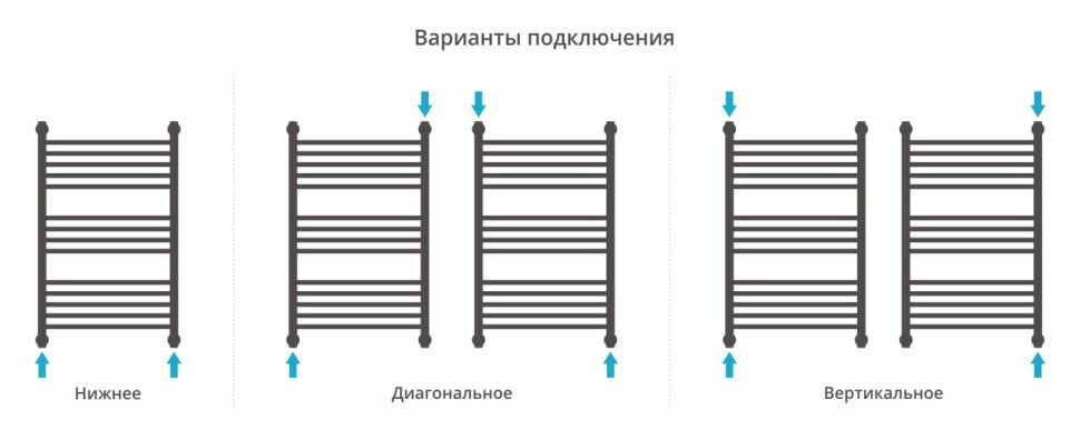 Полотенцесушитель Водяной узкий Di Kron, модель Premium-Z 1000х400 из нержавеющей стали, 3 вида подключения, лесенка