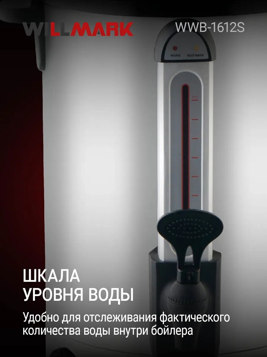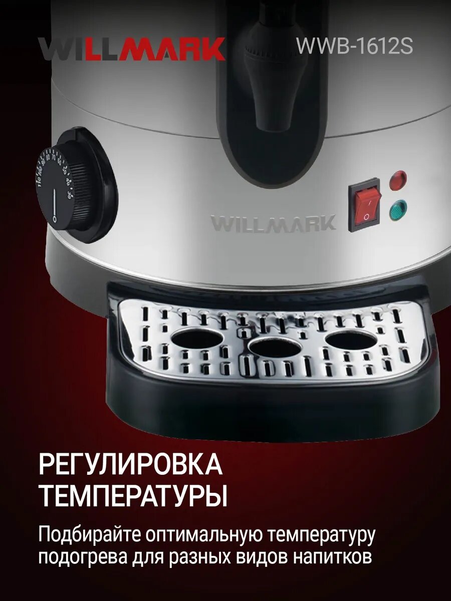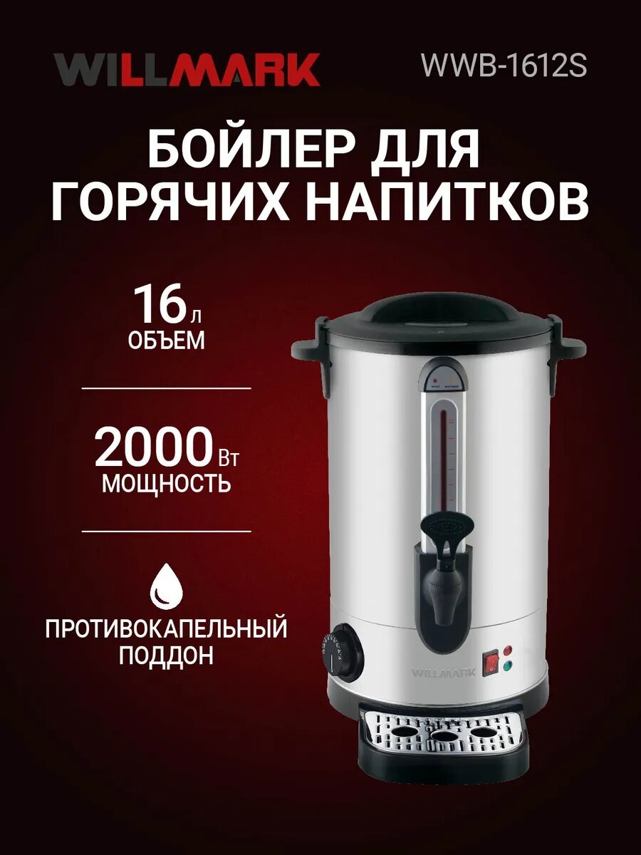 Купить Бойлер для горячих напитков WILLMARK WWB-1612S (16л,2000Вт, терморег.30-110°С, поддерж. t°, мет. поддон) с доставкой по всей России. Бойлер для горячих напитков WILLMARK WWB-1612S (16л,2000Вт, терморег.30-110°С, поддерж. t°, мет. поддон): сравнение цен, характеристики, фото, актуальное наличие и цены.