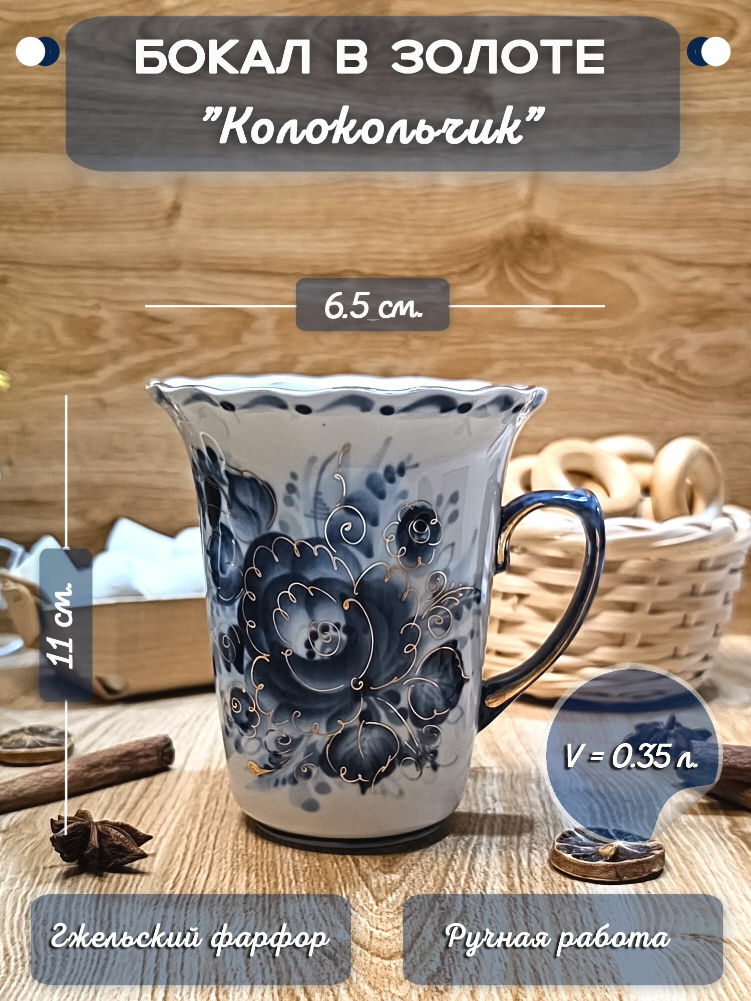 Купить Бокал чайный в золоте Гжель «Колокольчик», объём 350 мл. Гжельский фарфор, авторская роспись с доставкой по всей России. Бокал чайный в золоте Гжель «Колокольчик», объём 350 мл. Гжельский фарфор, авторская роспись: сравнение цен, характеристики, фото, актуальное наличие и цены.