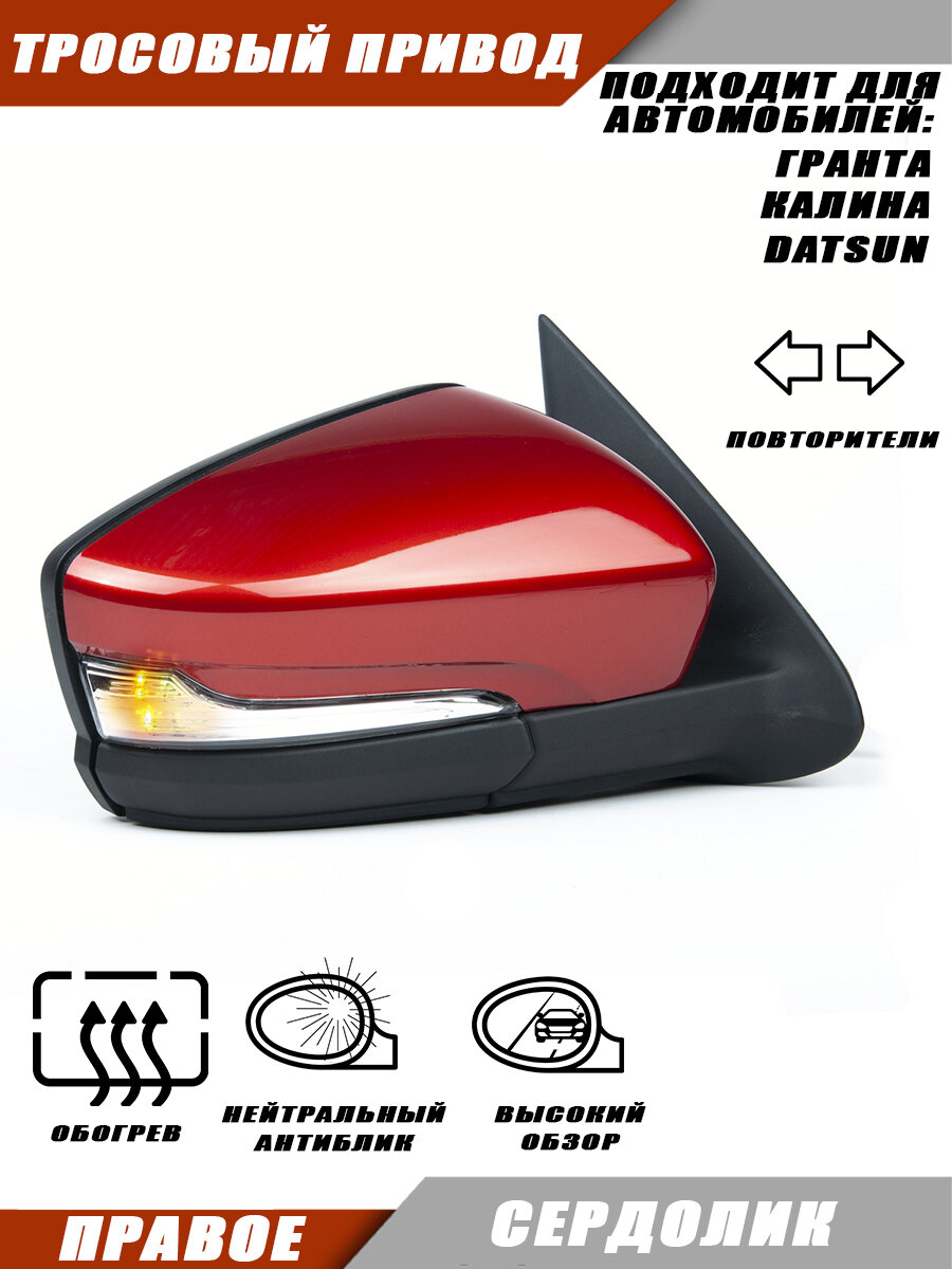 Боковое зеркало правое на Гранту обогрев, тросовый привод, повторитель поворота, цвет Сердолик 195. Solina: сравнение цен, характеристики, фото, актуальное наличие и цены.