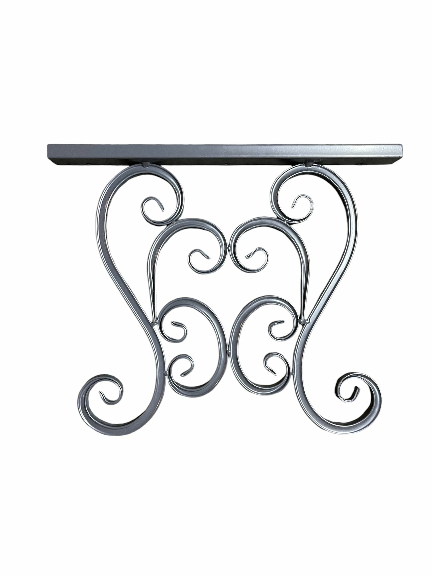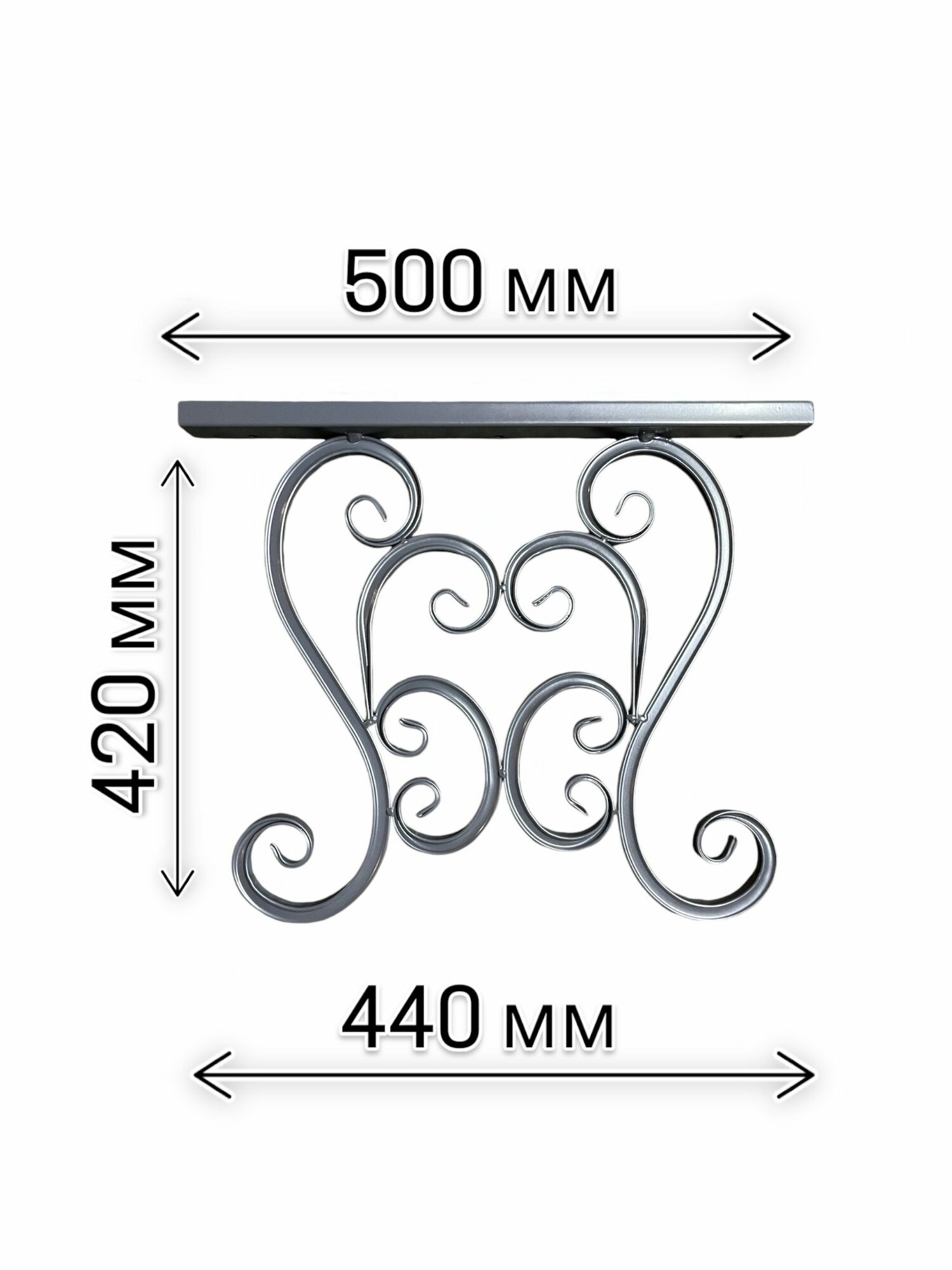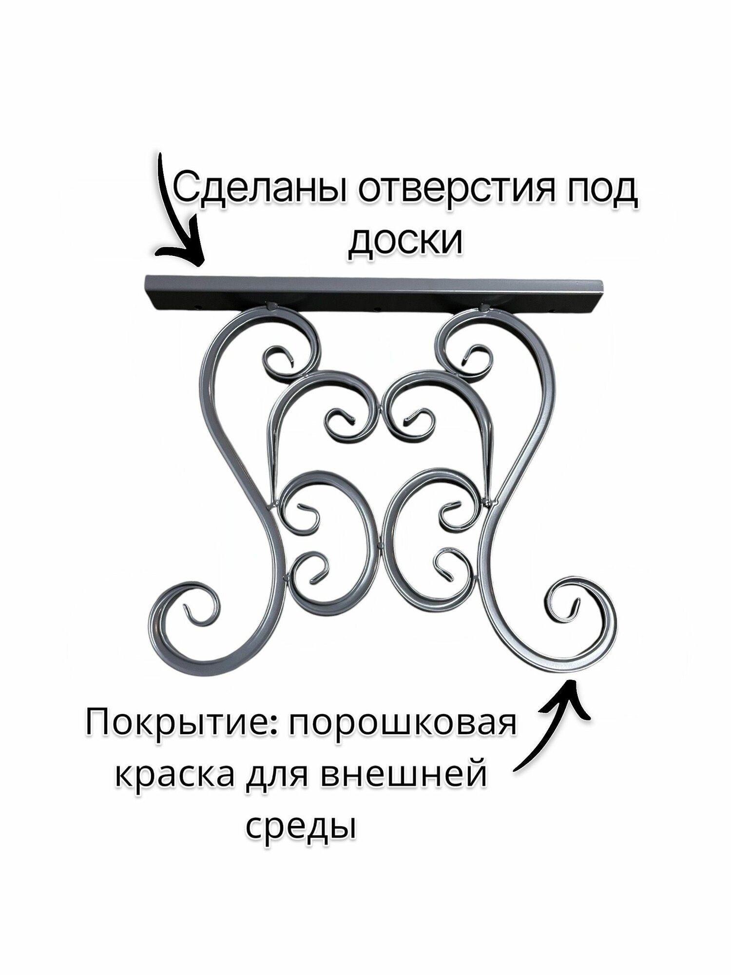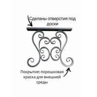 В комплект входит 2-е боковые опоры из металлического профиля 40х20 мм с коваными вензелями из 15 профиля покрытые порошковой краской для внешней среды.