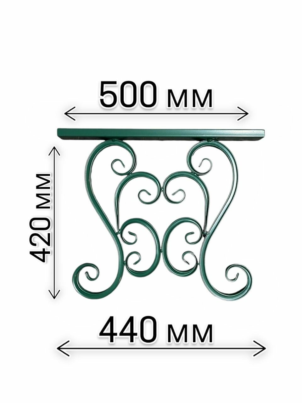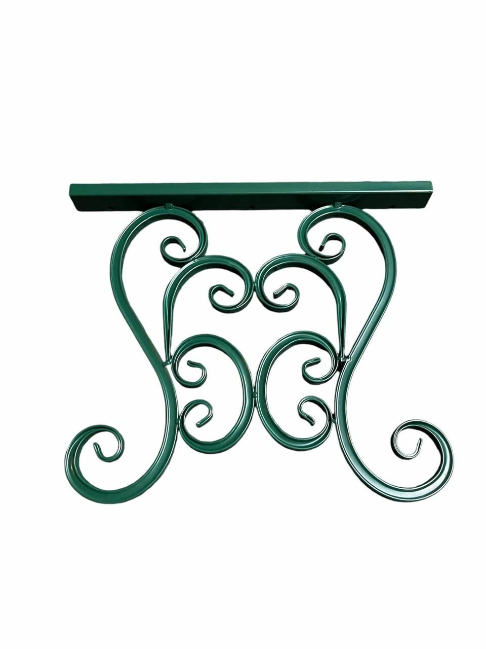 В комплект входит 2-е боковые опоры из металлического профиля 40х20 мм с коваными вензелями из 15 профиля покрытые порошковой краской для внешней среды.