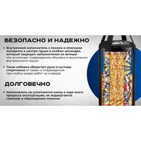 Мешок для бокса изготовлен из ткани ПВХ высокого качества, что обеспечивает солидный запас прочности и высокую износоустойчивость. Внутри мешка находится усиленный стержень, что увеличивает срок его службы.