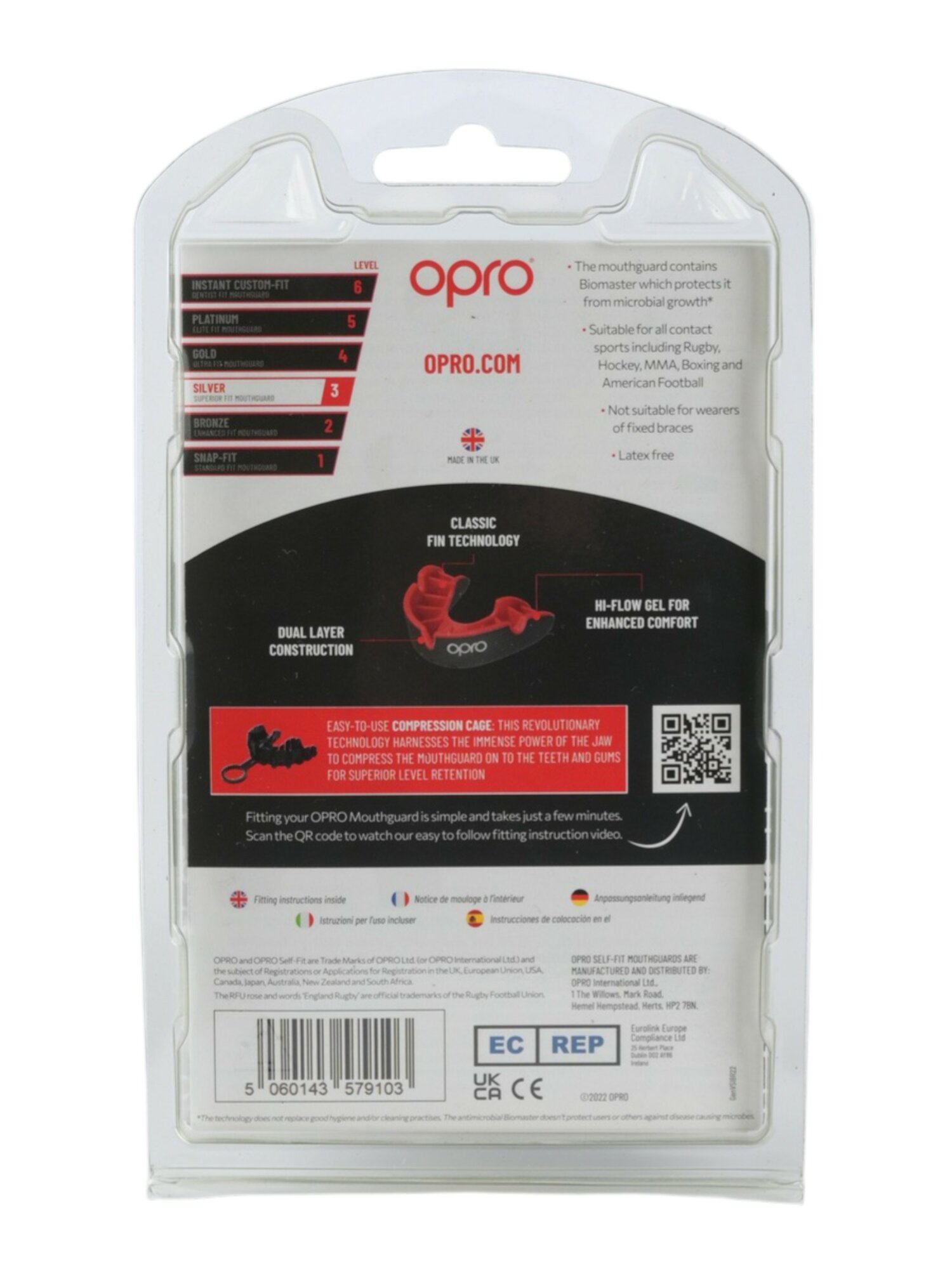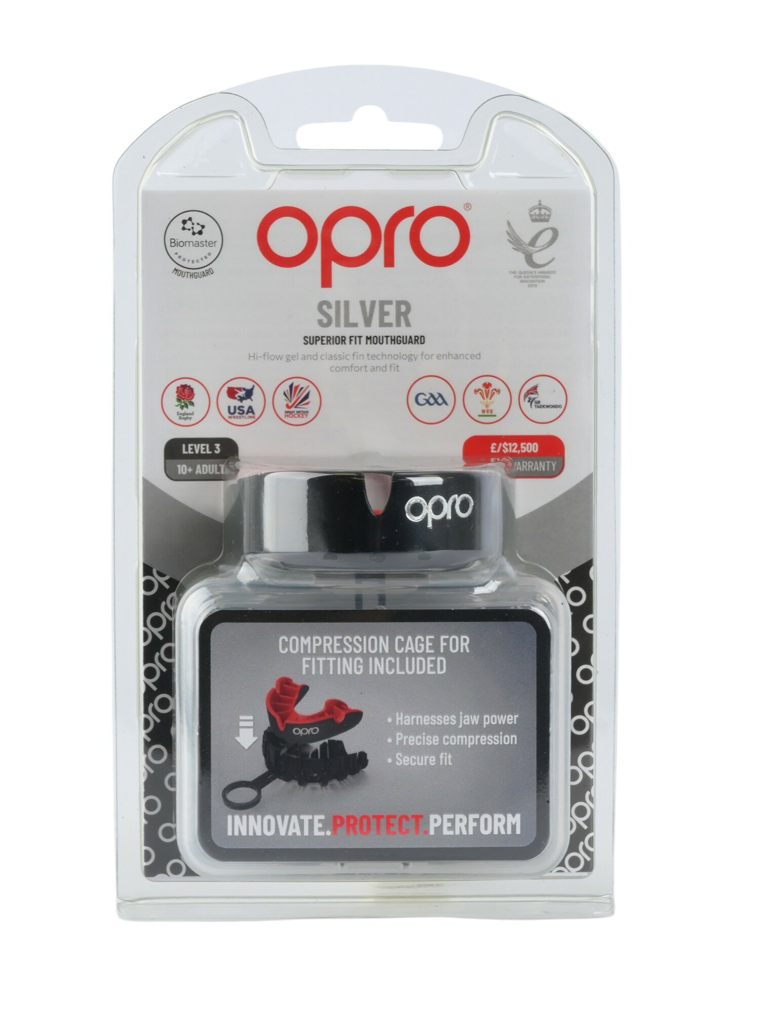 Купить Боксерская капа Opro Silver Level Black оригинал из Великобритании с доставкой по всей России.