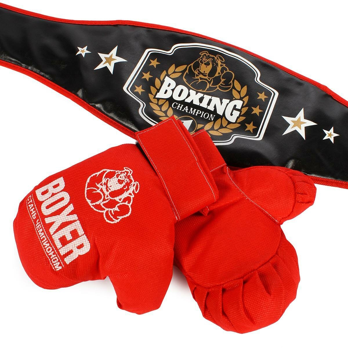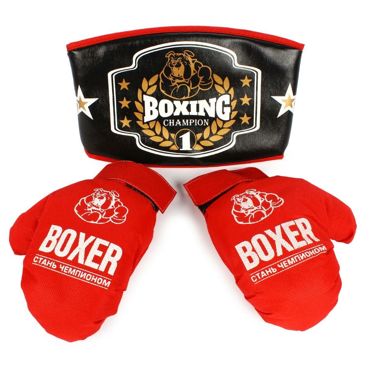 Купить Боксерский набор ‘BOXING CHAMPION’, перчатки и пояс, красный/черный, Velcro с доставкой по всей России.