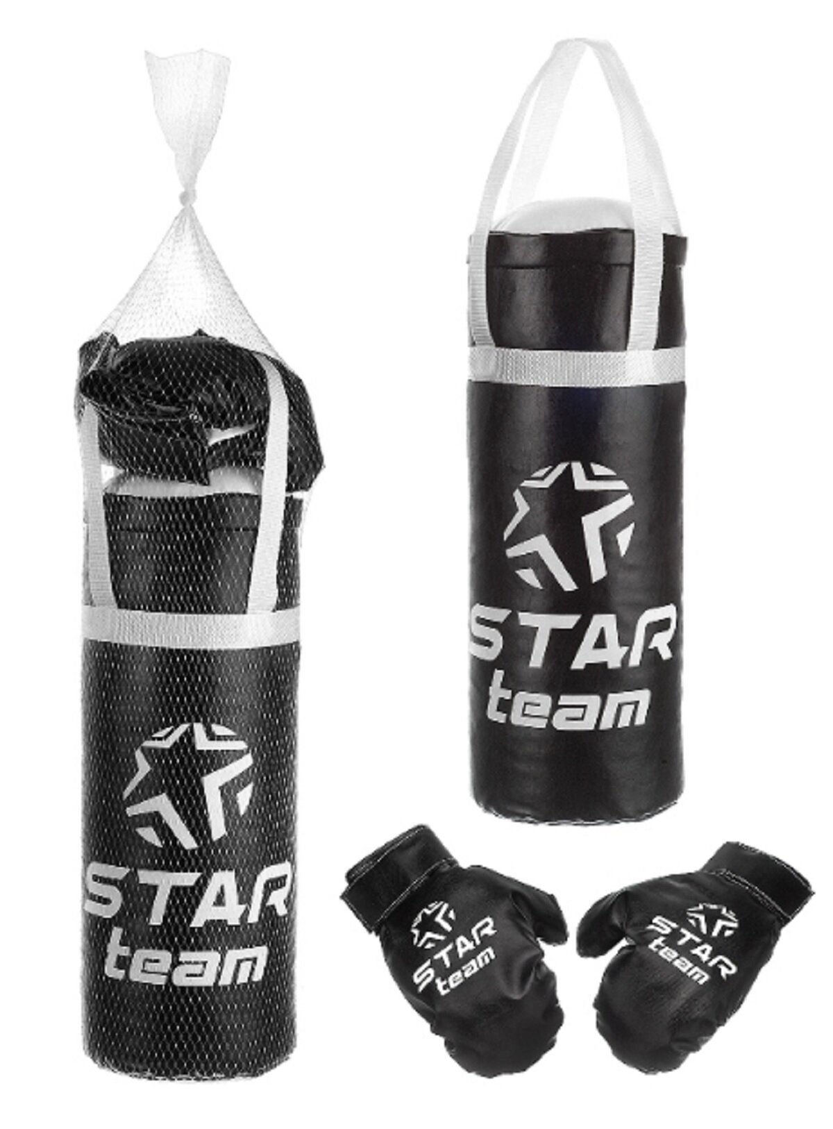 Купить Боксерский набор «STAR TEAM» №2 средний, цвет черный, вес: груша — 2,5 кг, перчатки — 200 гр, в сетке 40 см с доставкой по всей России.