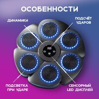 Боксёрский интерактивный тренажёр — это инновационное устройство для домашних тренировок по боксу. Он помогает развивать силу и скорость ударов, а также координацию движений. Особенность тренажёра — его интерактивность. Он оснащён датчиками удара, которые отслеживают количество и силу ударов, а также датчиком подсчёта ударов для контроля эффективности тренировок. Тренажёр изготовлен из прочного ABS-пластика и мягкой резины, а также оснащён светодиодами, подсвечивающими мишень для ударов. Во время занятий прорабатываются мышцы рук, плеч, предплечий и спины, укрепляется мышечный корсет, снижая нагрузку на позвоночник. Тренажёр подходит для взрослых и детей, в комплекте идут две пары боксёрских перчаток MMA разных размеров. Также стоит отметить музыкальное сопровождение и функцию интеллектуального распознавания ритма музыки для разных режимов тренировок — просто подключите свою музыку через Bluetooth. Интерактивная музыкальная мишень для бокса — отличный выбор для тех, кто хочет заниматься боксом дома и получать максимальную пользу от тренировок. для бокса тренажер, набор для бокса, набор для бокса детский, музыкальный боксерский тренажёр, для бокса тренажер, спортивная стенка, рондом бокс.