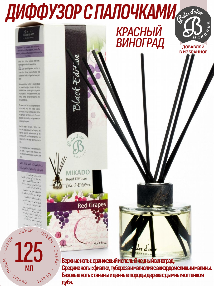 Купить Boles d’olor / Диффузор с палочками 125мл Красный виноград / Red Grapes (Black Edition) с доставкой по всей России.