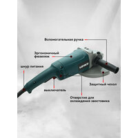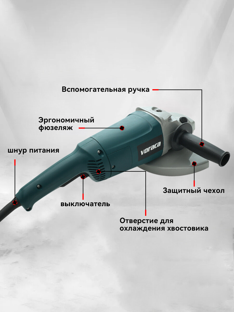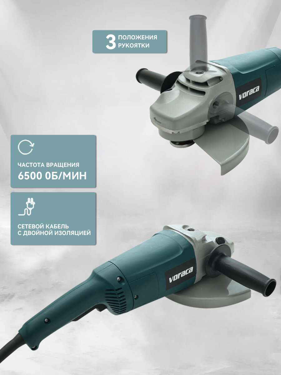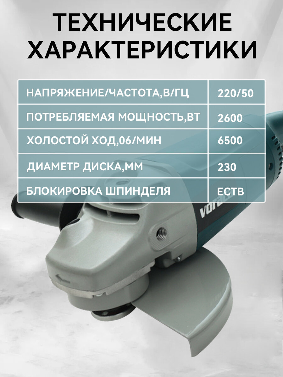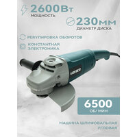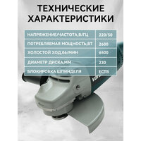Представляем вашему вниманию угловую шлифовальную машину с диаметром диска 230 мм, идеально подходящую для выполнения самых различных задач в строительстве и ремонте. Эта болгарка станет надежным помощником вам в обработке различных материалов благодаря мощному двигателю на 2600 Вт. С высокой максимальной скоростью вращения в 6500 об/мин, вы сможете осуществлять как грубую, так и тонкую полировку, а также выполнять мощную шлифовку.