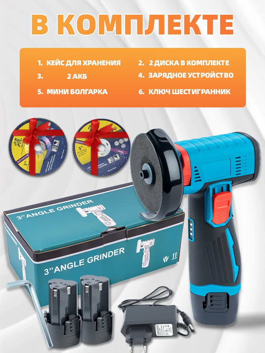 Купить Болгарка Angle Grinder, 600Вт, 19500об/мин, 2 аккумулятора, антивибрация, 75мм с доставкой по всей России.