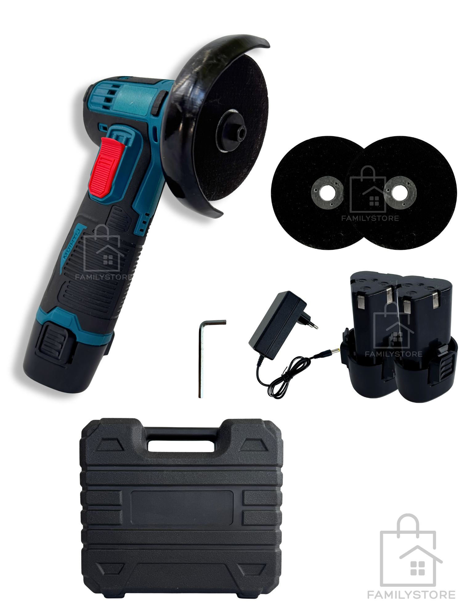Купить Болгарка беспроводная угловая мини шлифовальная машина, 19500 об/мин с двумя аккумуляторами. Синяя с доставкой по всей России.