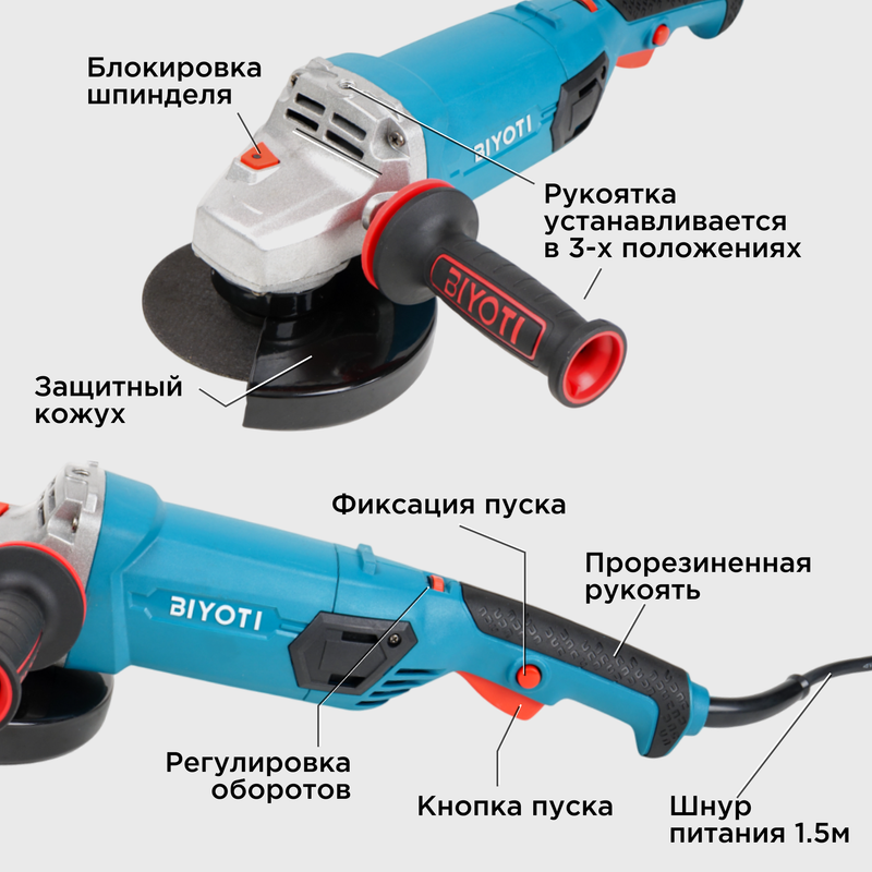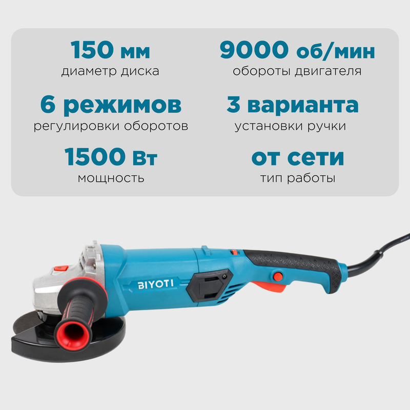 Купить Болгарка (УШМ) BIYOTI 150мм, 1500Вт, 220В с доставкой по всей России.