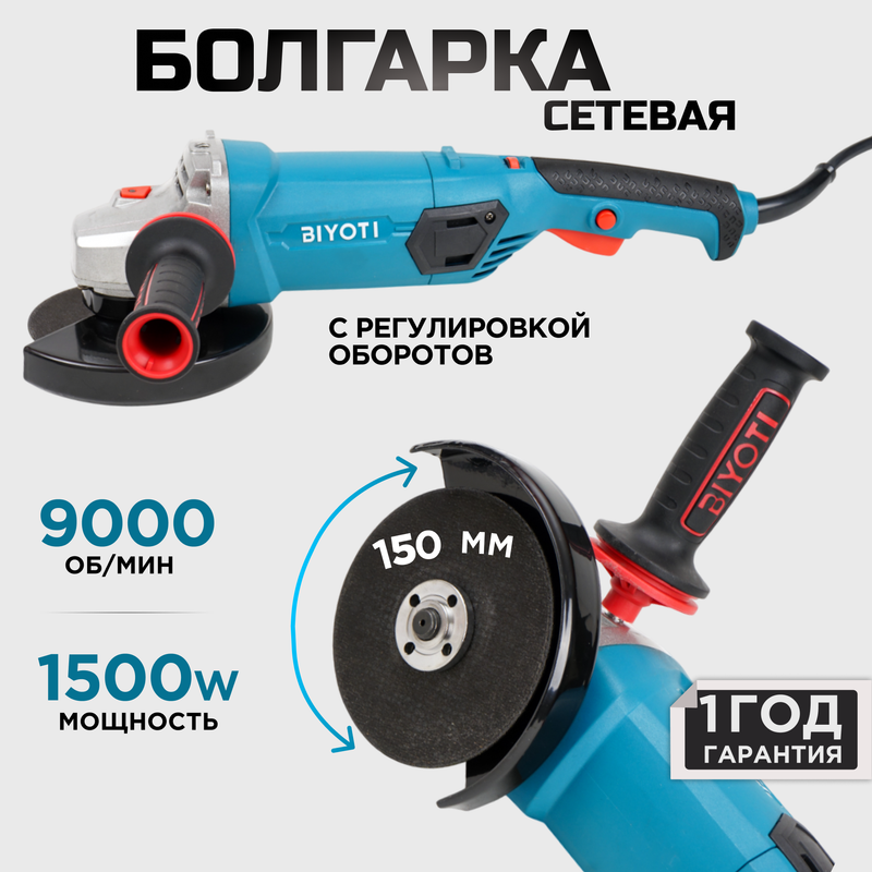 Болгарка (УШМ) BIYOTI 150мм, 1500Вт, 220В: сравнение цен, характеристики, фото, актуальное наличие и цены.