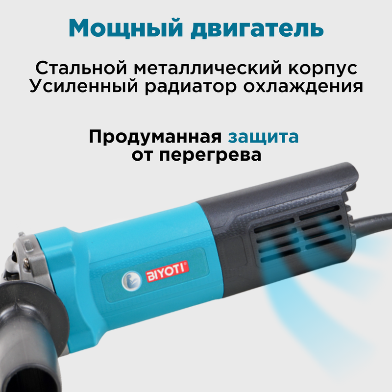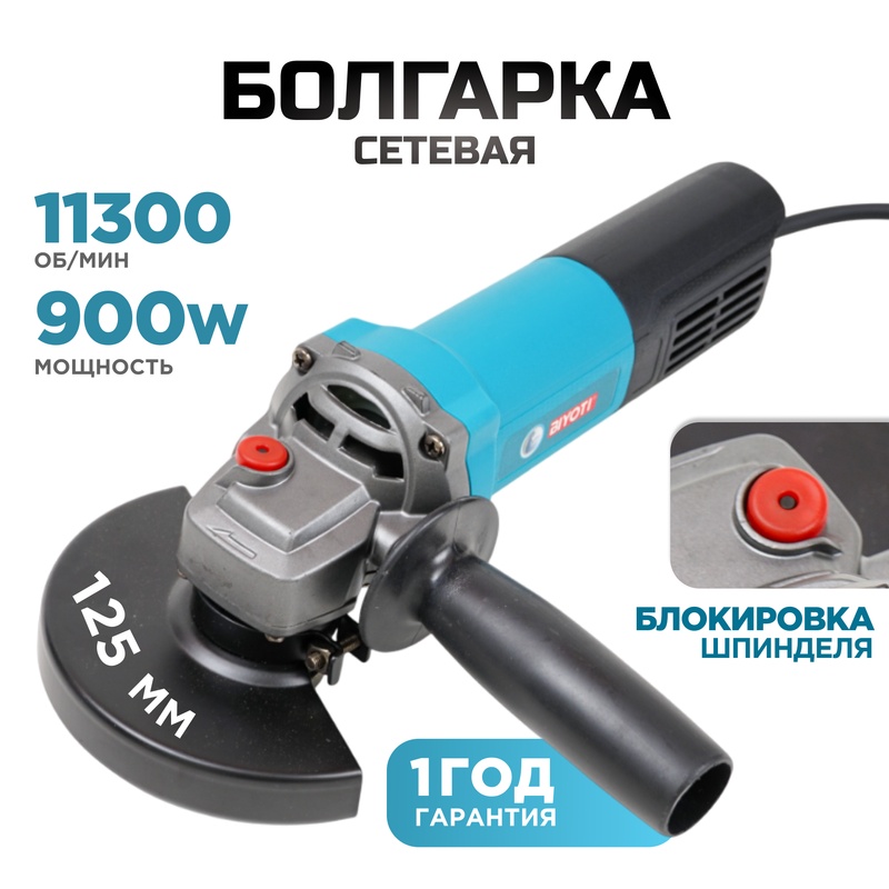 Купить Болгарка (УШМ) BIYOTI 125мм, 900Вт, 220В с доставкой по всей России.
