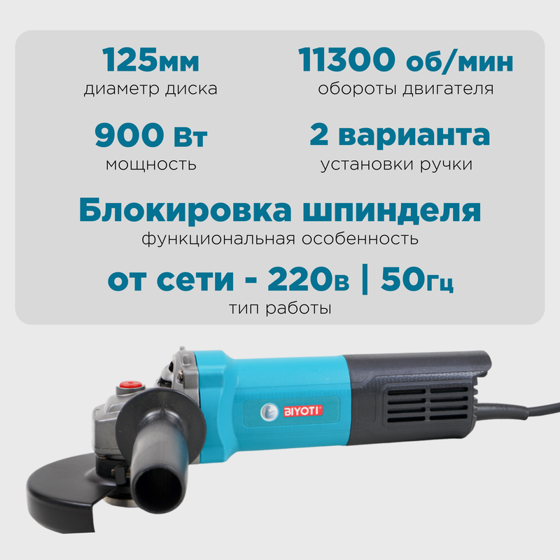 Болгарка (УШМ) BIYOTI 125мм, 900Вт, 220В: сравнение цен, характеристики, фото, актуальное наличие и цены.