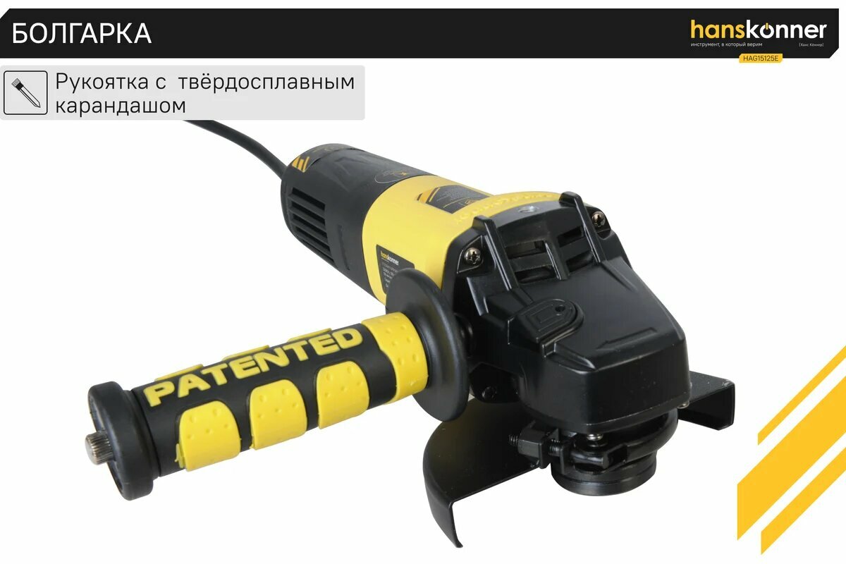 Купить Болгарка Hanskonner HAG15125E, защитный кожух, дополнительная рукоятка с доставкой по всей России. Болгарка Hanskonner HAG15125E, защитный кожух, дополнительная рукоятка: сравнение цен, характеристики, фото, актуальное наличие и цены.