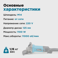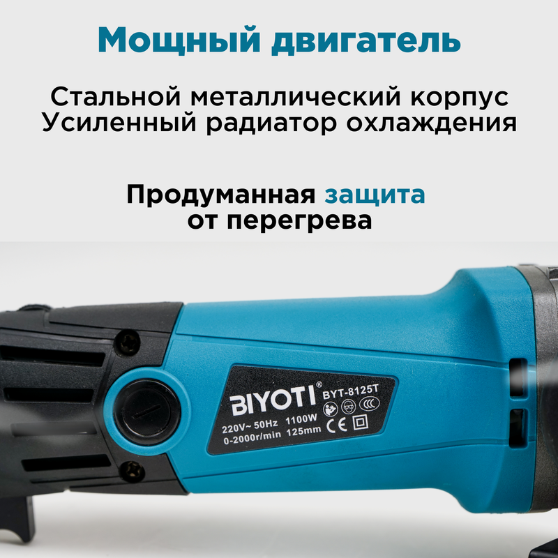 Угловая шлифовальная машина сетевая (болгарка) 1100W, 125 мм, BIYOTI
