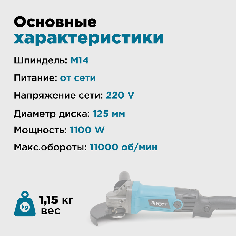 Угловая шлифовальная машина сетевая (болгарка) 1100W, 125 мм, BIYOTI: сравнение цен, характеристики, фото, актуальное наличие и цены.