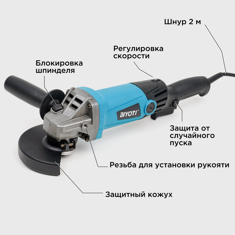 Купить Угловая шлифовальная машина сетевая (болгарка) 1100W, 125 мм, BIYOTI с доставкой по всей России.