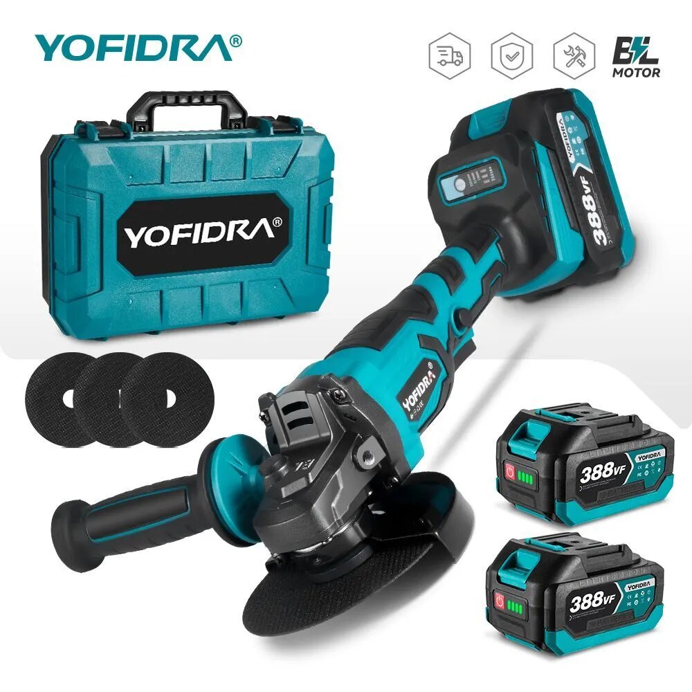 Болгарка УШМ аккумуляторная бесщеточная YOFIDRA, плавный пуск с регулировкой, 1500W , в кейсе, 2 АКБ, 3 диск в подарок: сравнение цен, характеристики, фото, актуальное наличие и цены.