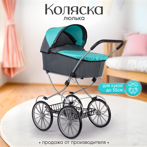 Коляска укомплектована съемной накидкой на люльку, матрасиком для куклы и корзиной для покупок или игрушек.