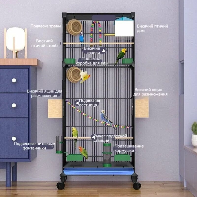 Очень высокая и вместительная клетка для попугаев и других мелких и средних птиц. Этот роскошный и прочный клетка для попугаев и других птиц идеально подходит для домашнего использования. Она изготовлена из высококачественного материала, который обеспечивает долговечность и безопасность для ваших пернатых друзей. Кл имеет уникальный дизайн, который обеспечивает комфортное проживание птицам. Она оснащена удобными кормушками, поилками и местами для отдыха. Кроме того, клетка имеет специальные защитные элементы, которые предотвращают побег птиц. Размер клетки позволяет птицам свободно перемещаться и развиваться. Она идеально подходит для разведения птиц или просто как дом для ваших пернатых друзей. Клетка легко собирается и моется, что делает уход за ней простым и удобным. Она также имеет удобные колеса, которые обеспечивают легкое перемещение по дому. Не откладывайте покупку этой роскошной клетки для ваших птиц. Обеспечьте им комфортное и безопасное жилье, которое они заслуживают.- Продукт предлагает прочный и безопасный дом для ваших пернатых друзей- Идеально подходит для разведения птиц или просто как домашний клетка- Этот роскошный клетка обеспечивает комфортное пространство для птиц- Может использоваться для разов птиц, включая попугаев и фазанов- - Олег собирается и устанавливается, что делает его идеальным для использования домаПакет включает в себя:Клетка для птиц * 1 + ящик для корма * 2 + ящик для воды * 1 + подставка для сушки * 2+ лоток*1+Ложка для кормления*1+Питатель*1 Показать полностью КомплектацияКлетка для птиц * 1 + ящик для корма * 2 + ящик для воды * 1 + подставка для сушки * 2+ лоток*1+Ложка для кормления*1+Питатель*1
