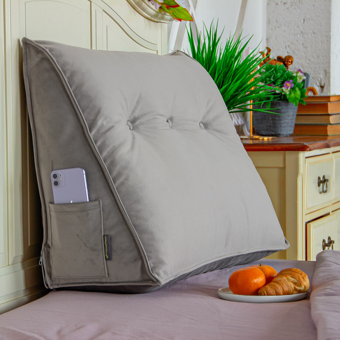 Большая клиновидная подушка для чтения мягкое изголовье для кровати PillowPlace бархат Серый Шелк 80х25х50 см: сравнение цен, характеристики, фото, актуальное наличие и цены.