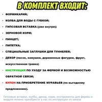 | Дополнительная информация | Муравьи в комплект НЕ входят, но их можно приобрести у нас по инструкции из заказа |