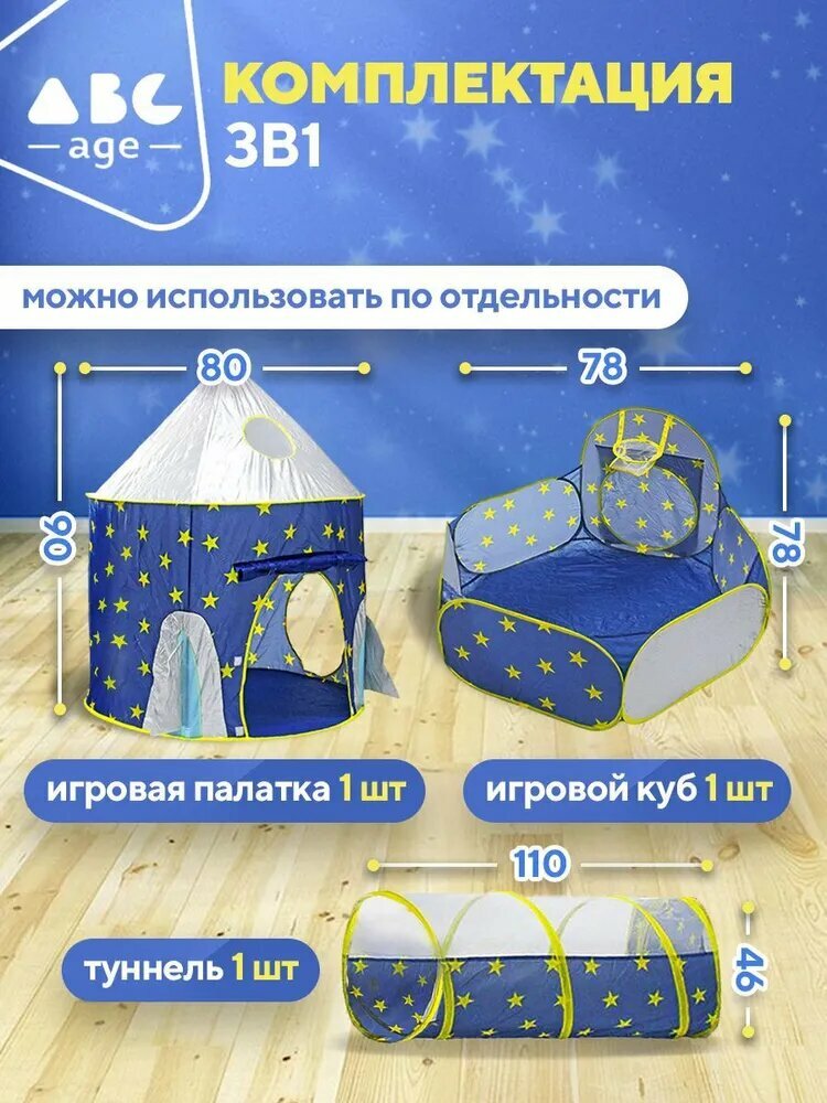 Купить Большая Палатка Детская Игровая с Манежем и Туннелем Лабиринт 3в1 abcAge Домик для детей с доставкой по всей России.