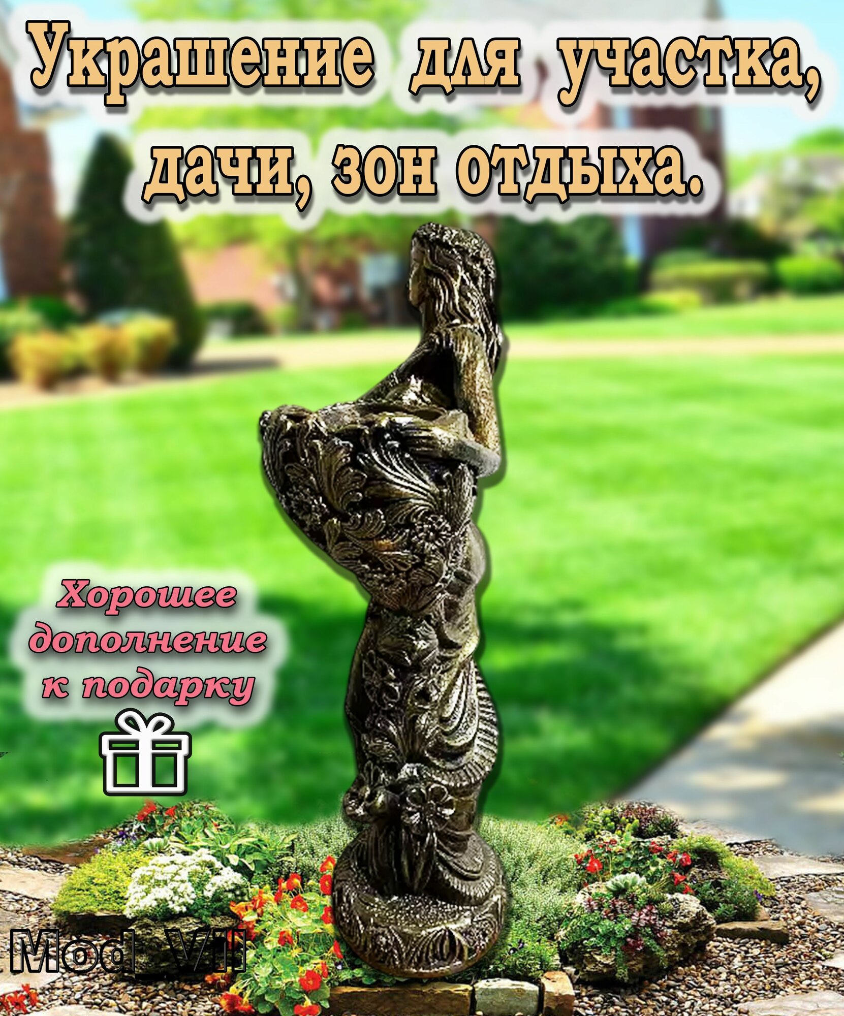 Фигурка сделана из качественного камня, из полистоуна, поэтому отличается долговечностью и устойчивостью к погодным условиям. С ней можно создать уникальный стиль вашего сада, дорожки на улице. Эта фигурка - не просто декорация, а настоящее произведения искусства, это отличный подарок для друзей и близких.