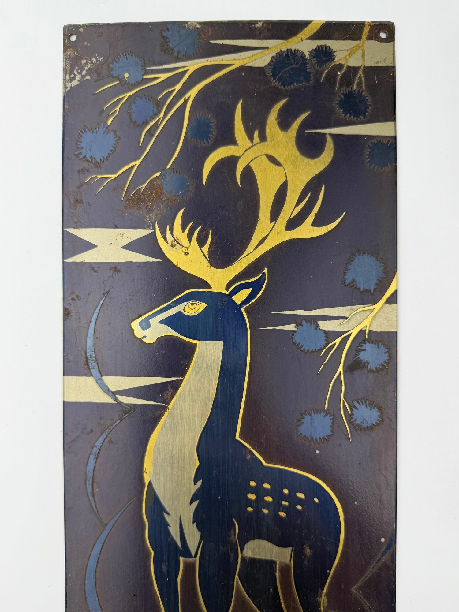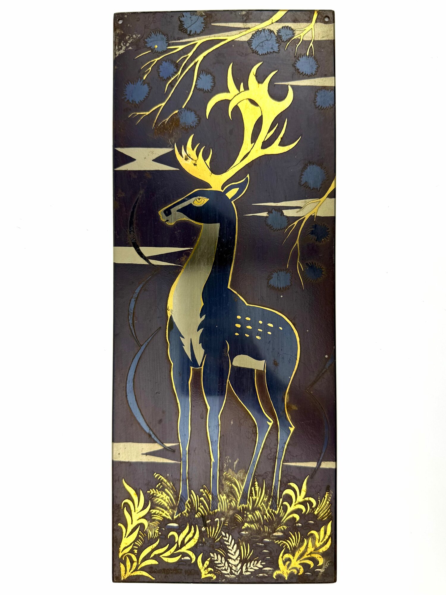 Купить Большая винтажная гравюра на стали олень 1984 г. 15х38,5 см. Златоуст. СССР. с доставкой по всей России.
