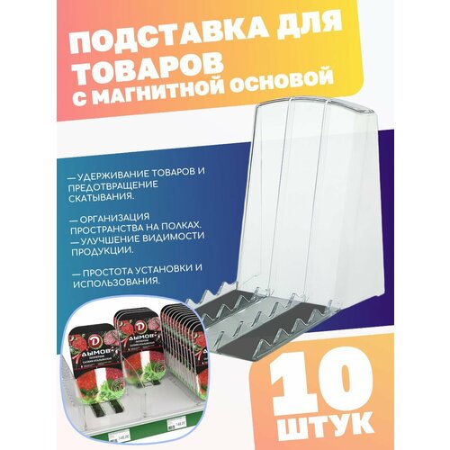 В упаковке 10 штук, что обеспечивает достаточное количество опор для организации эффективной выкладки товаров на полке.