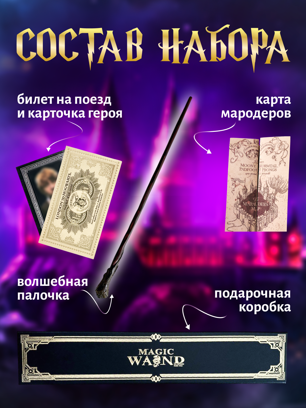 Bолшебная палочка Рона Уизли в подарочной коробке + Билет на Платформу 9 и 3/4: сравнение цен, характеристики, фото, актуальное наличие и цены.
