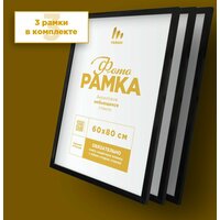 Большие багетные рамки 60х80 см черные, набор на стену (28 мм ширина багета!) / стиль IKEA / В подарочной упаковке (гарантия целости!), рама для алмазной мозаики, картины, постера, вышивки, фотографии, Tenko Decor, 3 шт.