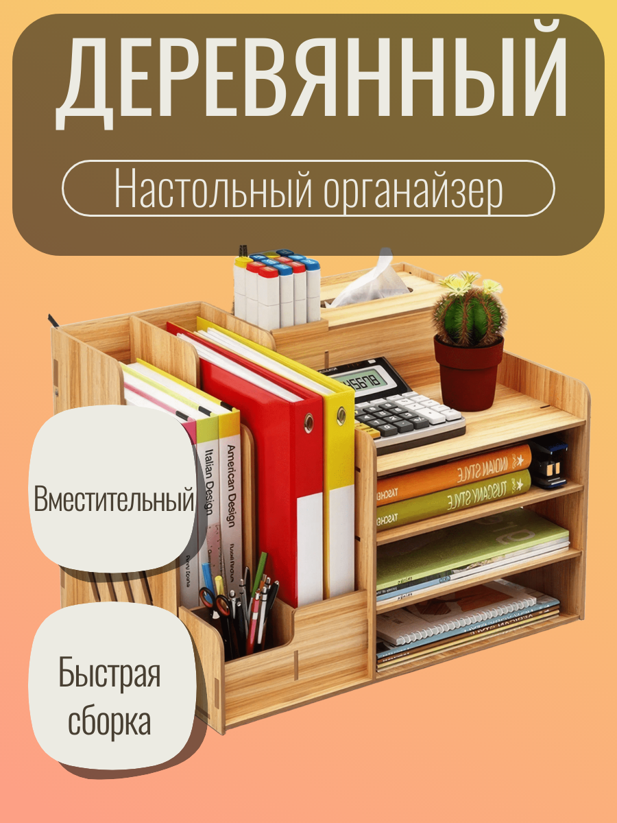 Большой деревянный настольный органайзер – идеальный практичный органайзер, с помощью которого вы легко создадите идеальный порядок на рабочем столе, будь то стол в офисе, дома или стол школьника или студента.