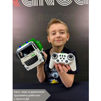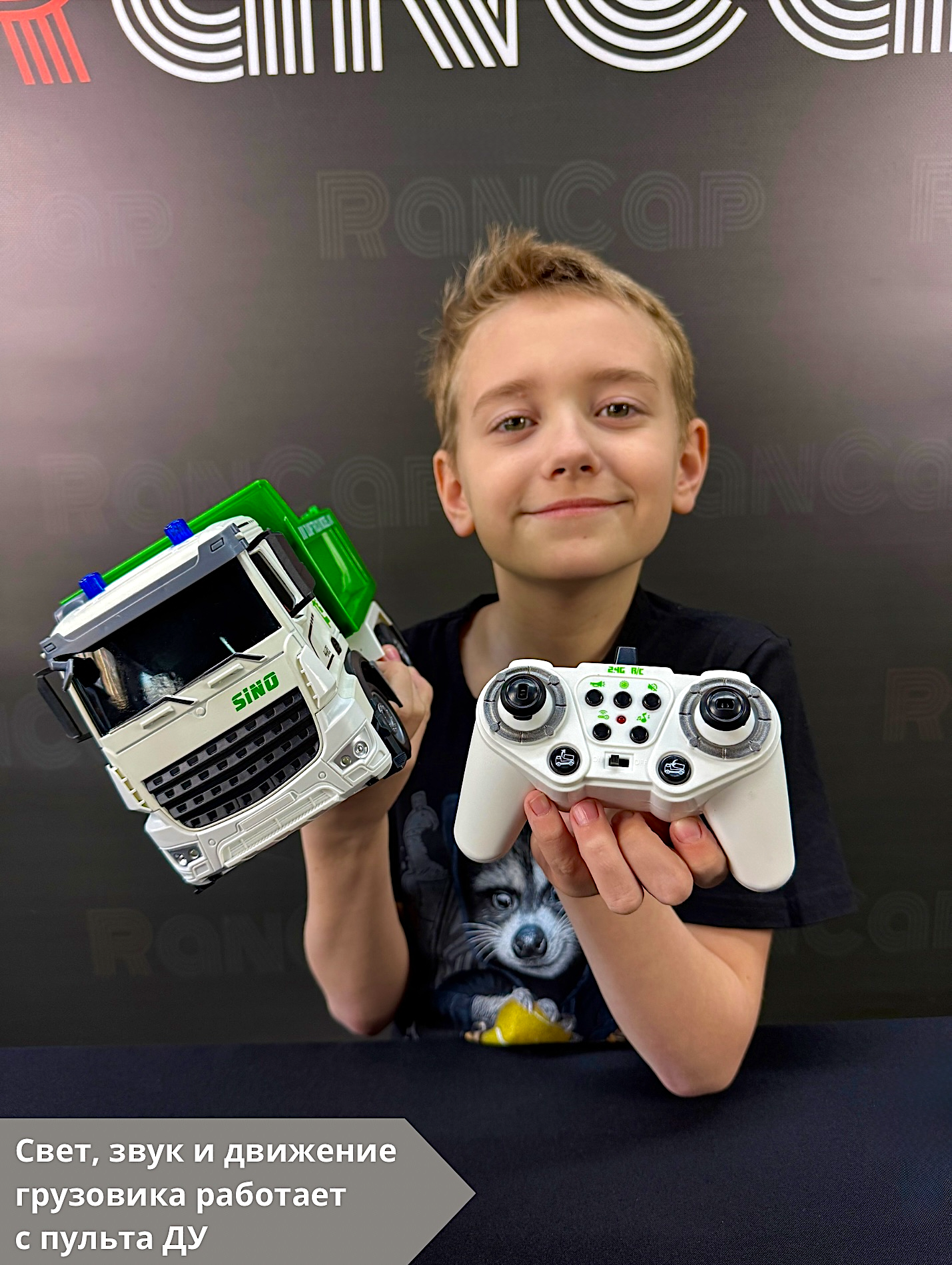 Грузовик оснащен современной системой управления на частоте 2.4 ГГц, обеспечивающей стабильный сигнал без помех на расстоянии до 30 метров. В комплекте – удобный пульт с джойстиком, позволяющий: