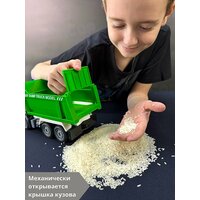 Корпус грузовика изготовлен из прочного металла с элементами из высококачественного ABS-пластика, что гарантирует долговечность даже при активной эксплуатации. Широкие колеса с прорезиненными покрышками обеспечивают отличное сцепление с любой поверхностью – будь то ковер в комнате или песок на детской площадке. Мягкие элементы (зеркала) безопасны для ребенка и повышают реалистичность модели.