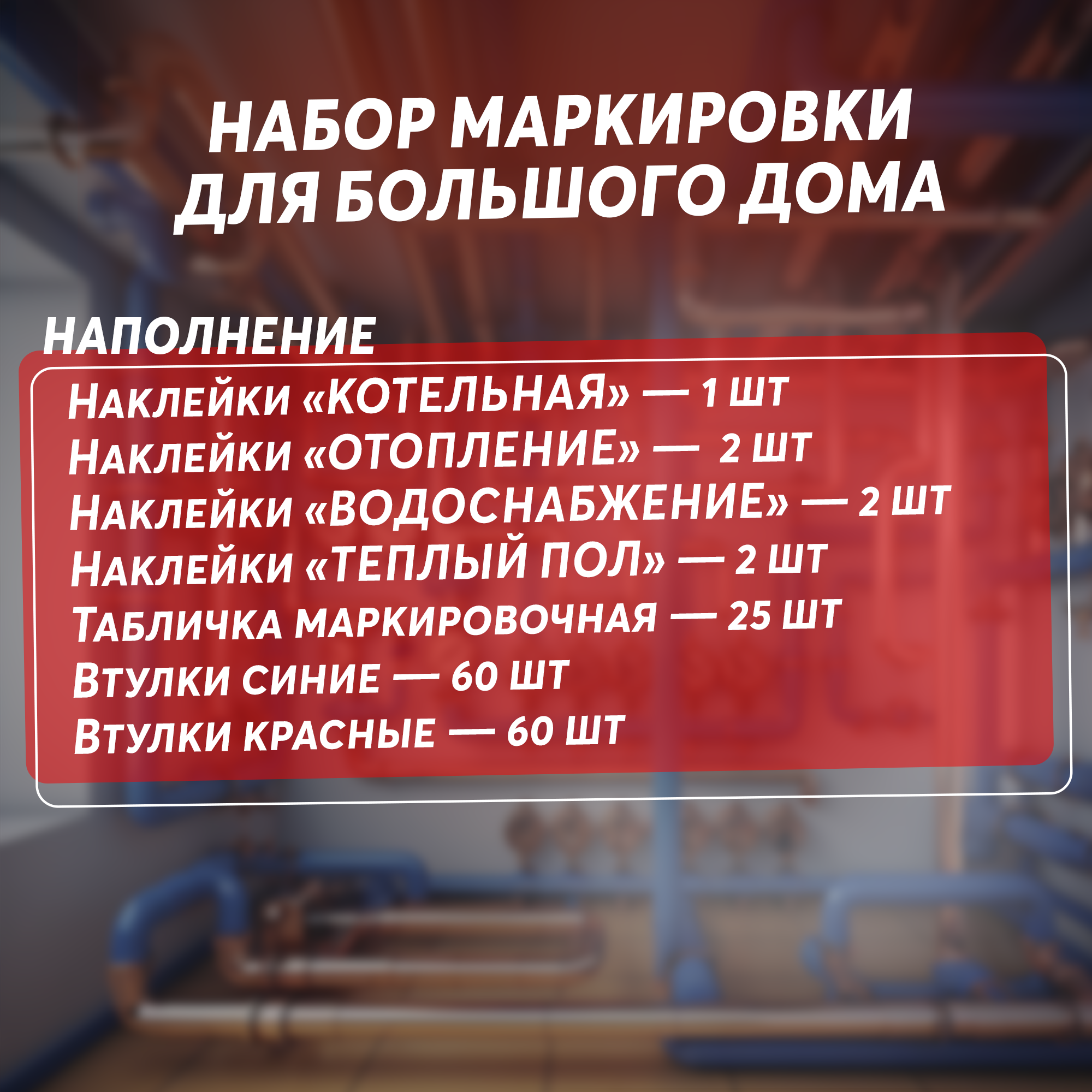 Большой дом. Маркировка коллектора отопления, водоснабжения, теплого пола, котельной. Наклейки, втулки и таблички: сравнение цен, характеристики, фото, актуальное наличие и цены.
