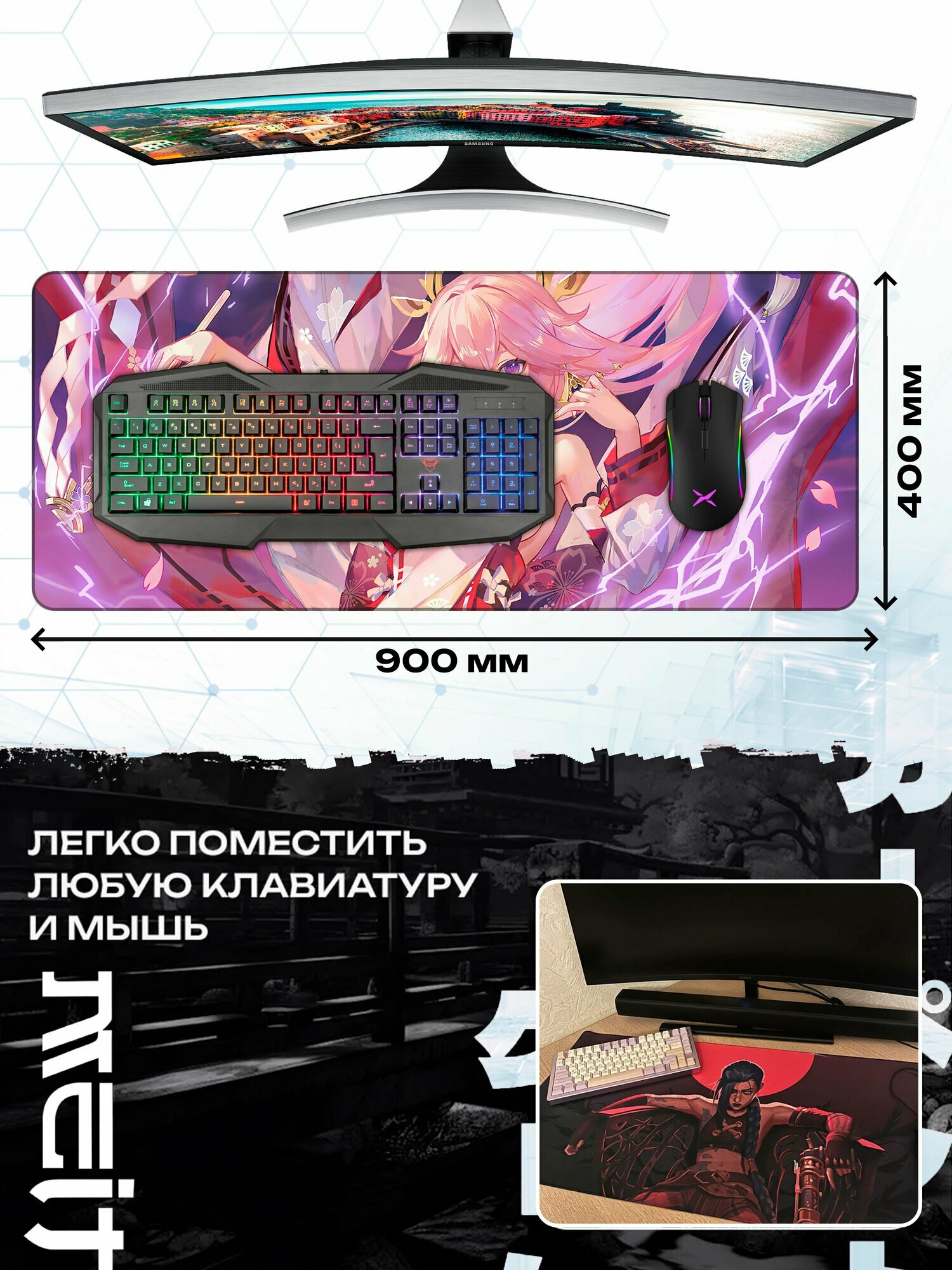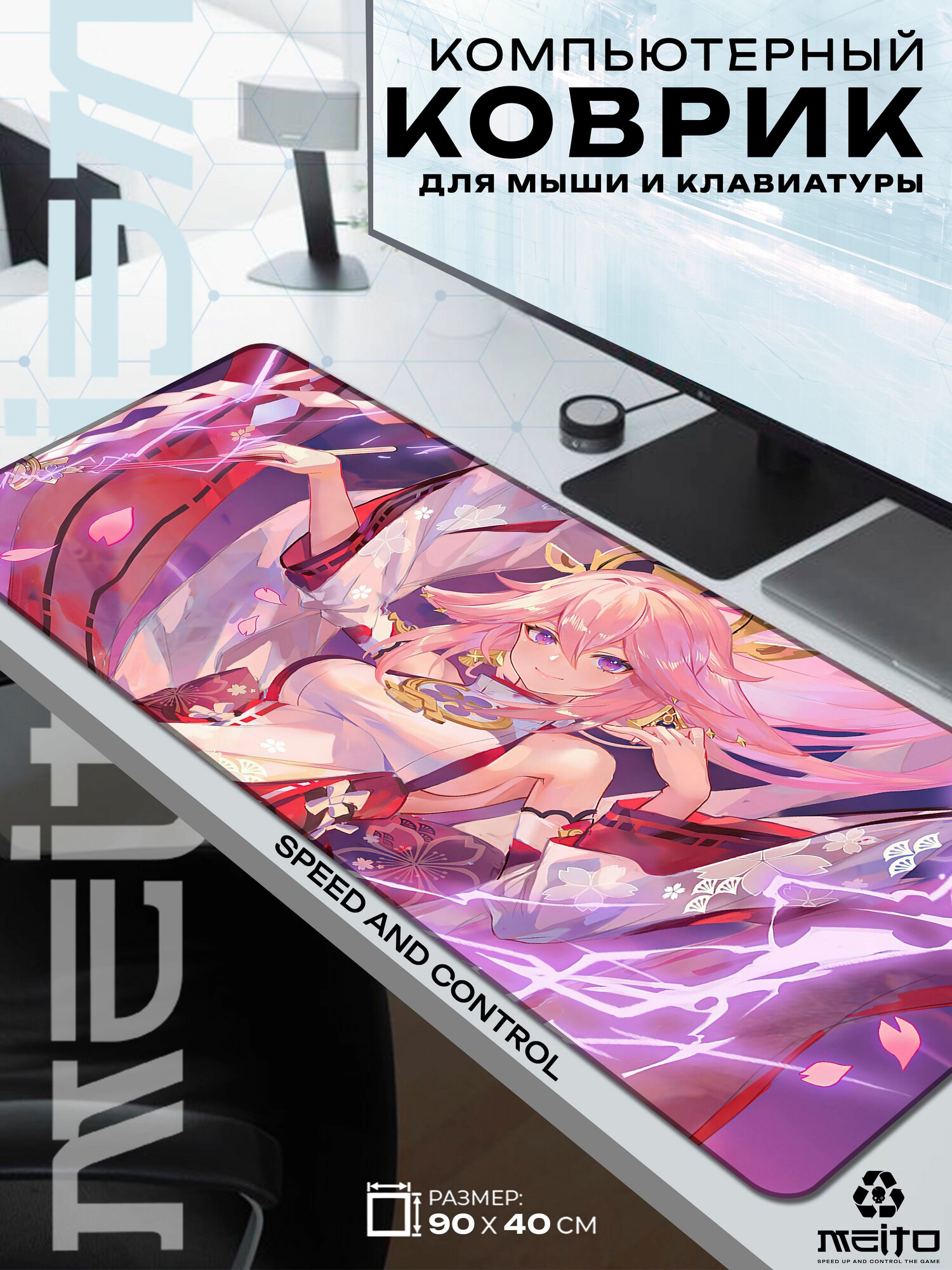 Большой игровой коврик для мыши и клавиатуры Геншин Импакт Яэ Мико 40×90см: сравнение цен, характеристики, фото, актуальное наличие и цены.