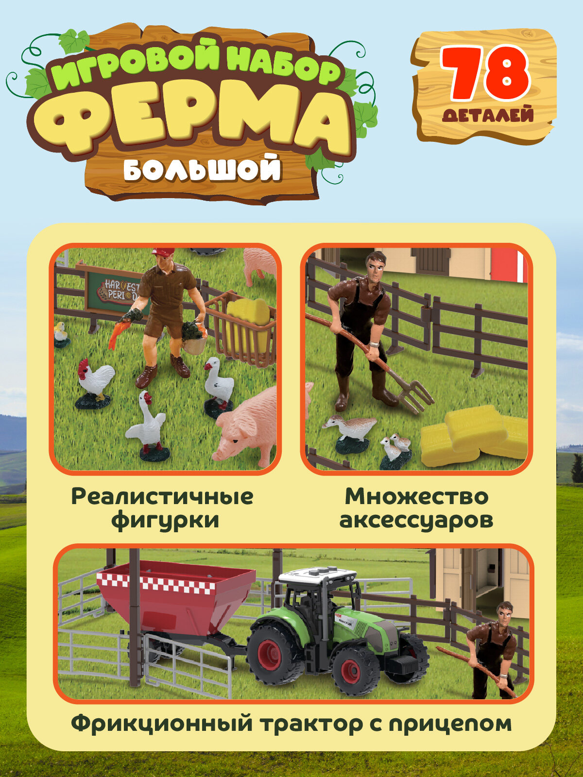 Купить Большой игровой набор «Ферма» с фигурками и аксессуарами, 78 деталей, JB0213600 с доставкой по всей России.