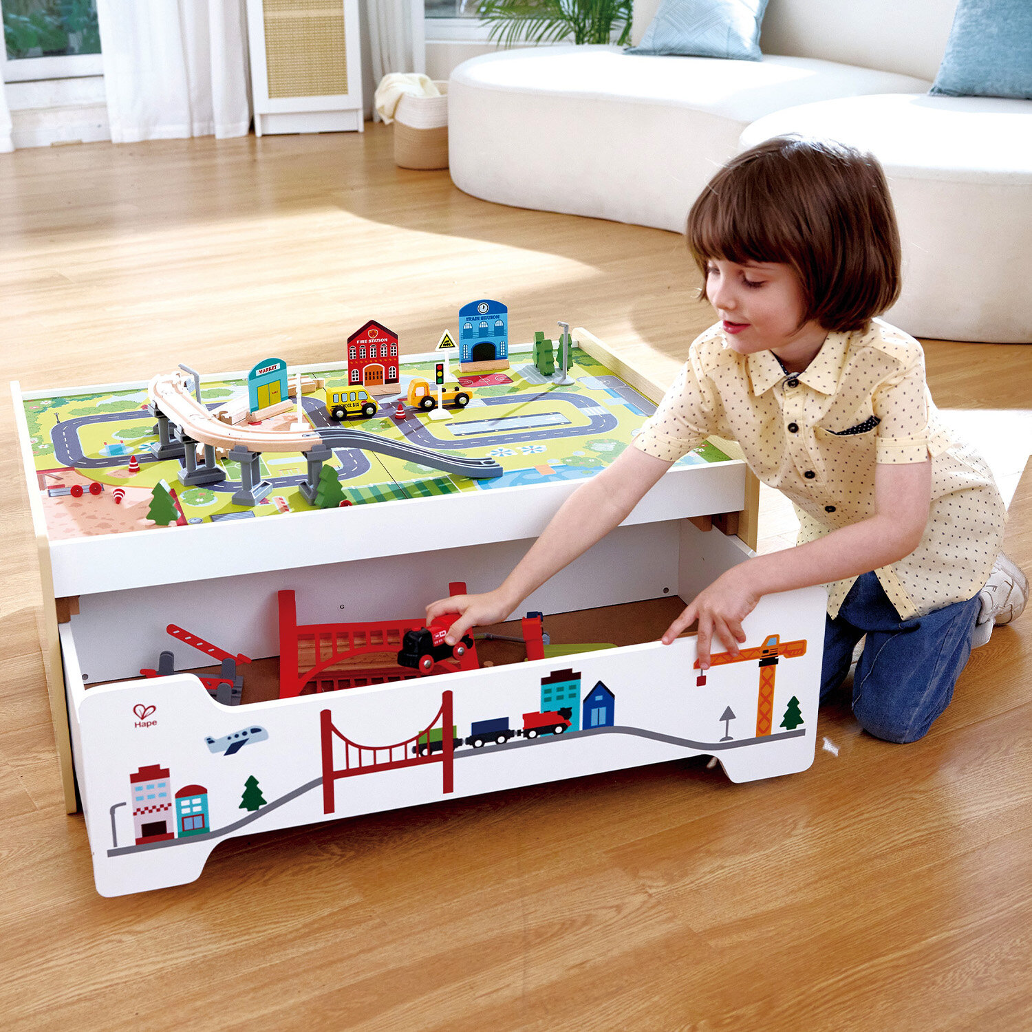Купить Набор большой игровой HAPE «Мой город» Ж/Д со столом для хранения E8941_HP с доставкой по всей России.