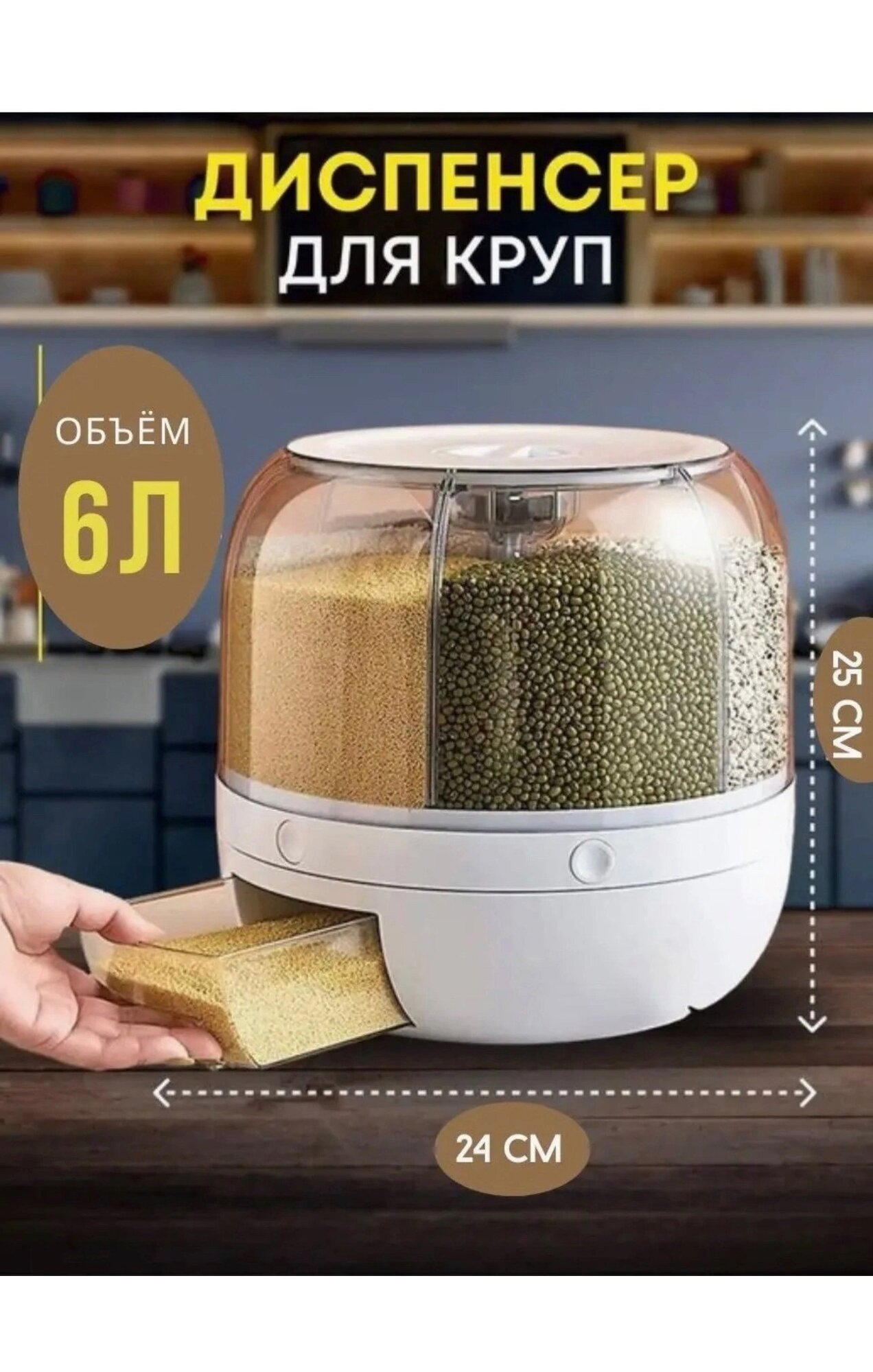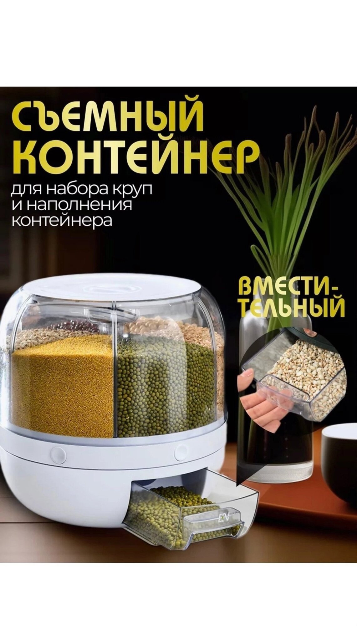 Контейнер для хранения сыпучих продуктов с 6ю секциями, это не заменимый инвентарь на кухне, мечта для любой женщины!