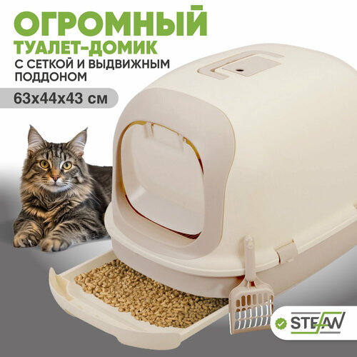 Купить Закрытый лоток-домик с высокими бортами STEFAN BP1903, для кошек системный, бежевый, XL, выдвижной поддон с доставкой по всей России.