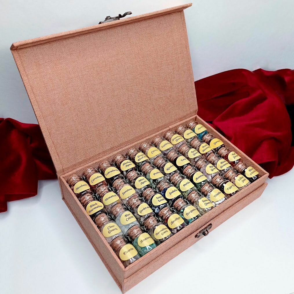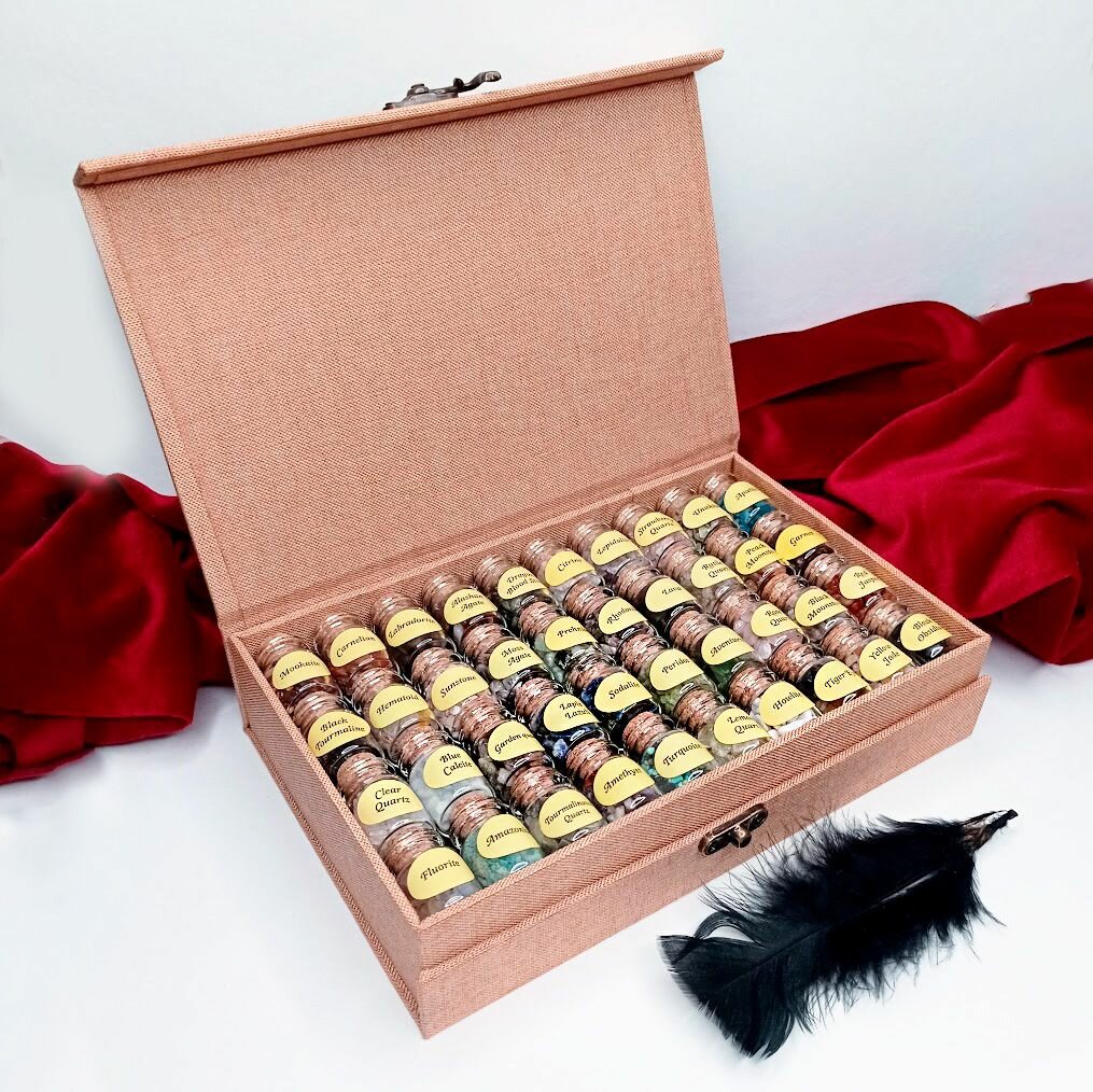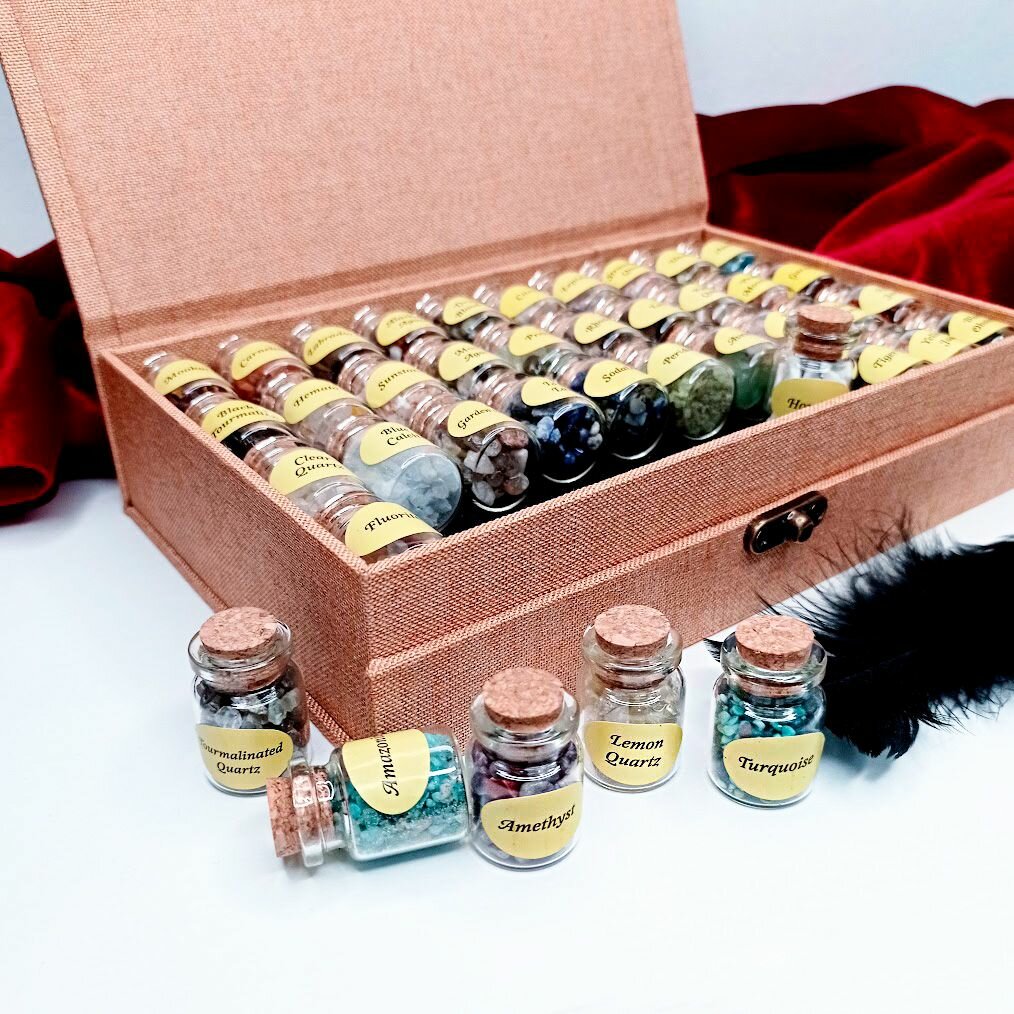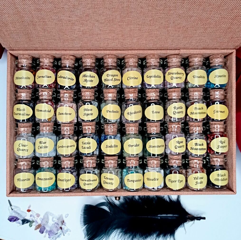Купить Большой набор камней — минералов в баночке в коробке / 40 бутылочек по 10 мл. / натуральные камни, амулет, талисман с доставкой по всей России.