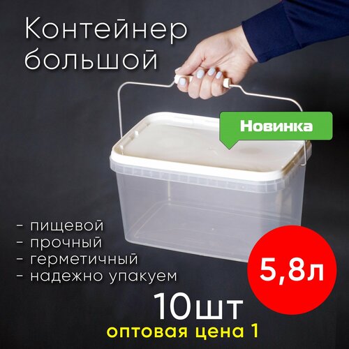 Большой пластиковый контейнер ведро 5,8 литра (5800 мл) набор из 10 шт, для хранения еды, пищевых продуктов и заморозки, прямоугольный с герметичной крышкой и ручкой, оптовая цена 1: сравнение цен, характеристики, фото, актуальное наличие и цены.