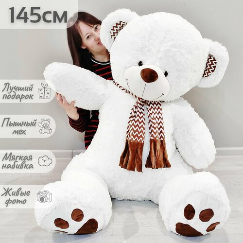Купить Большой плюшевый медведь 145 см, мишка, игрушка мягкая Барни, белоснежный (140 см +5 см в подарок) с доставкой по всей России.