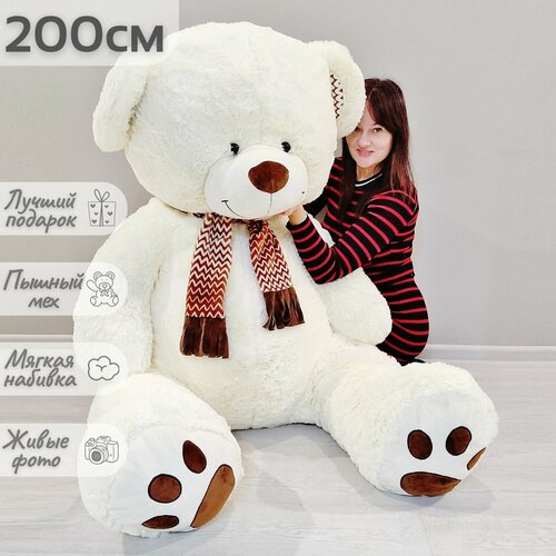 Купить Большой плюшевый медведь, белый кремовый мягкий мишка игрушка Барни 200 см с доставкой по всей России.