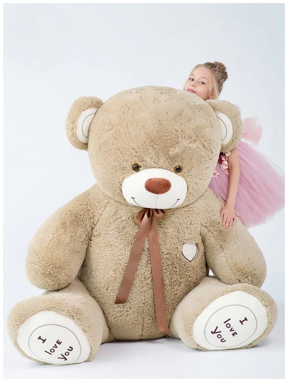 Большой и мягкий плюшевый медведь тима 240 СМ кофейного цвета. С сердечком на груди и надписями на лапках "I Love You". Прекрасно подойдет в подарок для любимого человека. На день рождение, новый год, 14 февраля, 8 марта, день святого Валентина, свидание и просто так.